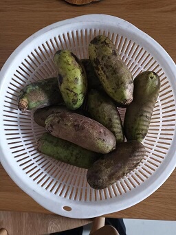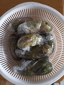 中国産のアケビを買ったのだが。届いてみると野生のもので傷がつき放題。そして硬い。ラッピをして冷蔵庫で熟す。一週間は食べられないな。