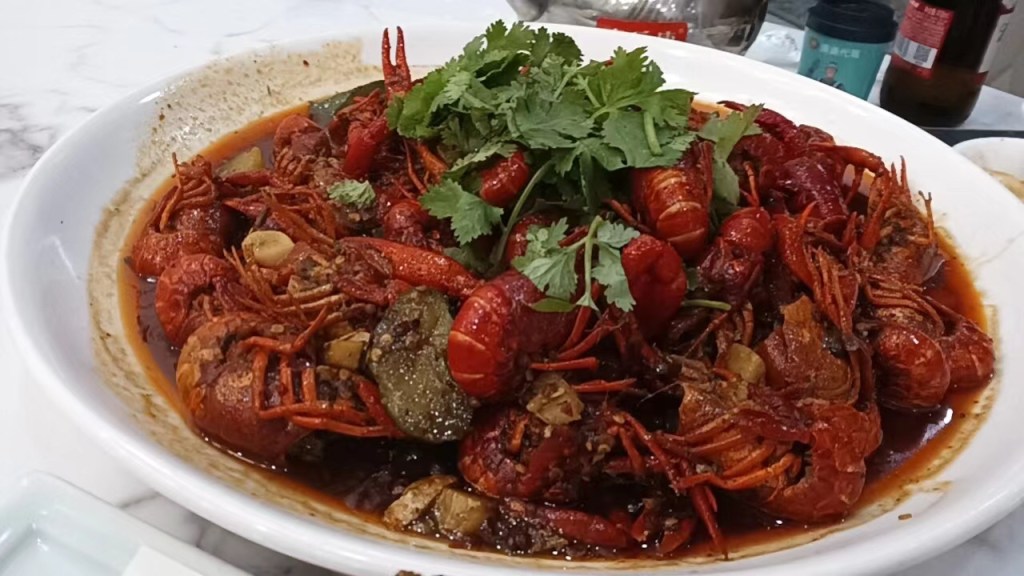 アメリカザリガニである。辛く味付けしてあるが、皮を剥いてくれなきゃ食べたくない一品。