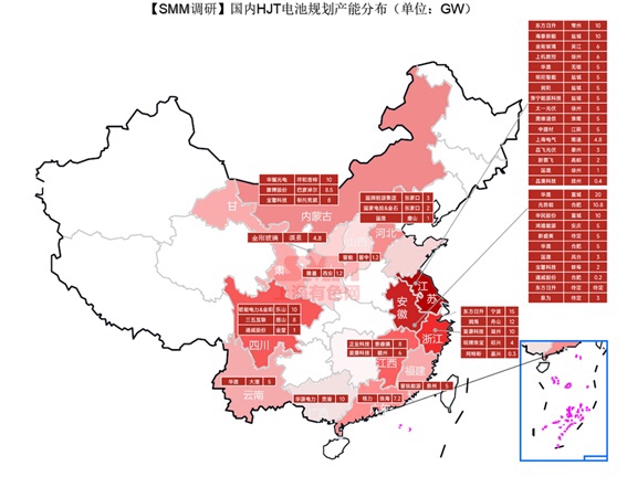 いずれにせよ、業界での現在の激しい競争の下で、HJTセルの「ボリューム」の開発は、太陽光発電会社にとって避けられない選択だ。 現在、ますます多くの太陽光発電会社がHJTセル生産ラインの投資および建設軍に加わり始めている。 上海非鉄金属ネットワークSMMの最近の調査によると、HJTバッテリー生産ラインを計画およびレイアウトする国内企業は約46社、プロジェクト拠点は約59社あります。 国内のHJTバッテリーの計画生産能力は308GWを超え、年初の計画規模から163%増加した。将来的には、多くの大手企業がHJTバッテリー拡張軍に参入することが予想される。